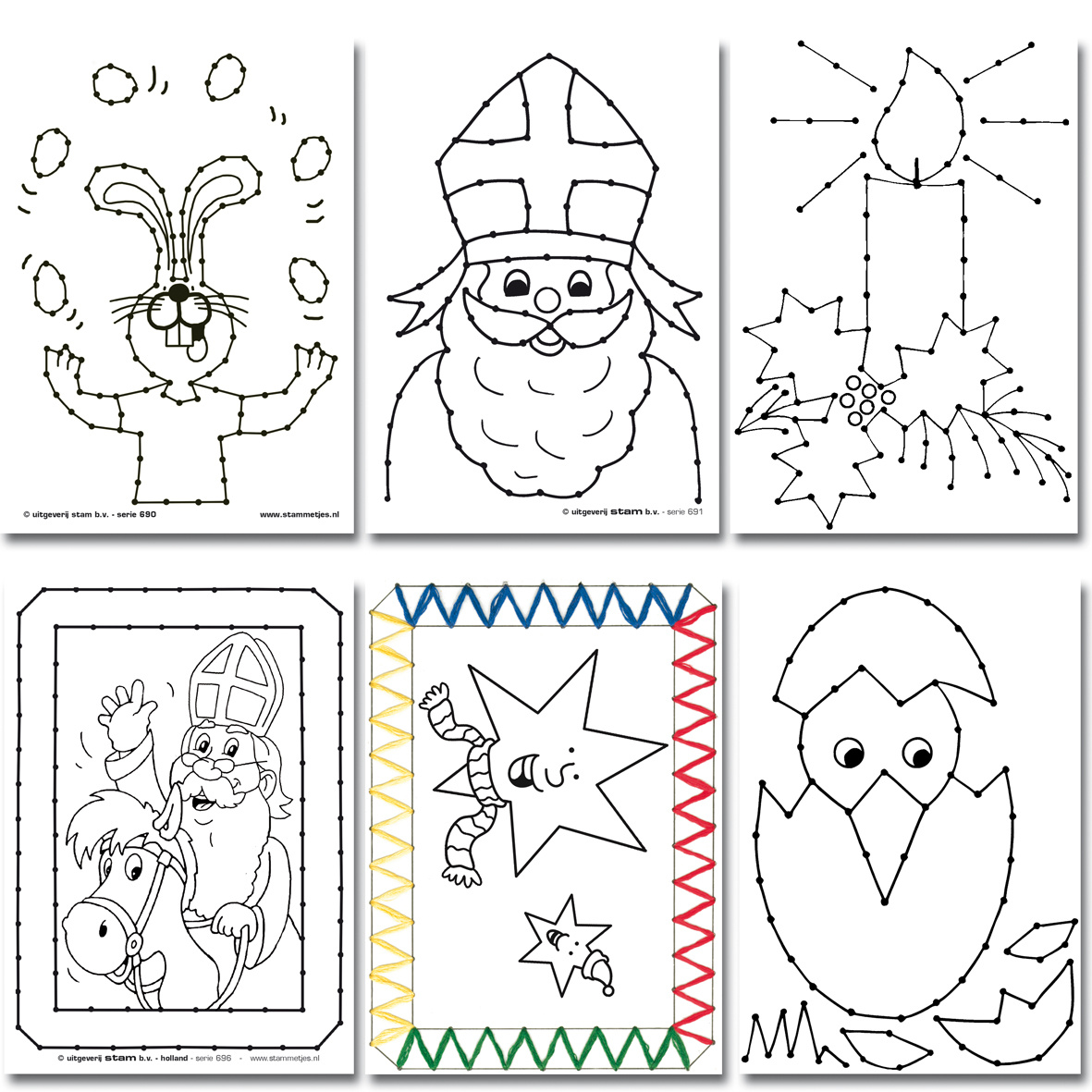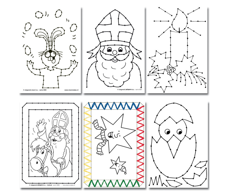 Tip: Laat de kinderen eerst alle gaatjes doorprikken op een prikkussen, zodat ze aan de achterkant kunnen zien waar ze de naald terug moeten steken.
