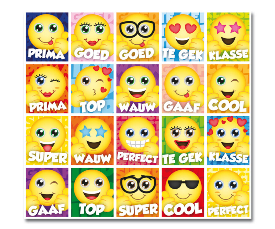 4 stickervellen met elk 20 stickers van 2,4 x 2,7 cm.