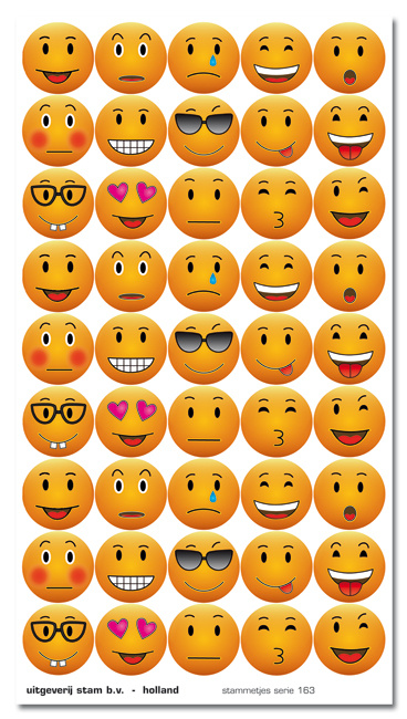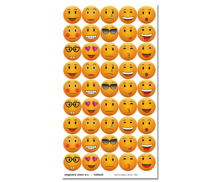 8 stickervellen met elk 20 stickers van 2,4 x 2,7 cm.
