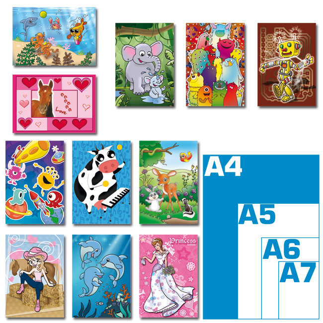 Reuzewenskaarten - formaat A4 | Reuzewenskaarten van stevig karton, formaat 20,5x29,5cm (A4). Per pak 4 verschillende motieven. Ook als verjaardags, bedank- of uitnodigingskaart te gebruiken. |