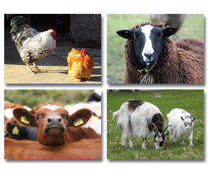 1 set van 4 grote kaarten (A5) boerderijdieren