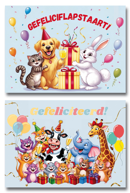 6 set van 4 grote kaarten (A5) Felicitatie voor driejarige - €9,95