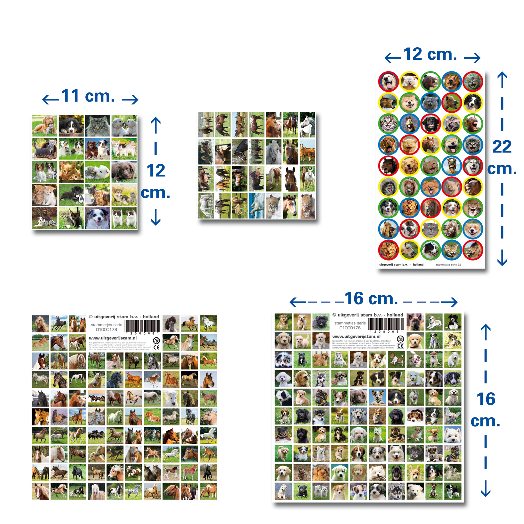 Een gevarieerd pakket stickers van honden, paarden en poezen