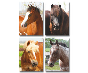 4 Sprekende foto's paardenhoofden, als prentkaart in de collectie opgenomen.
