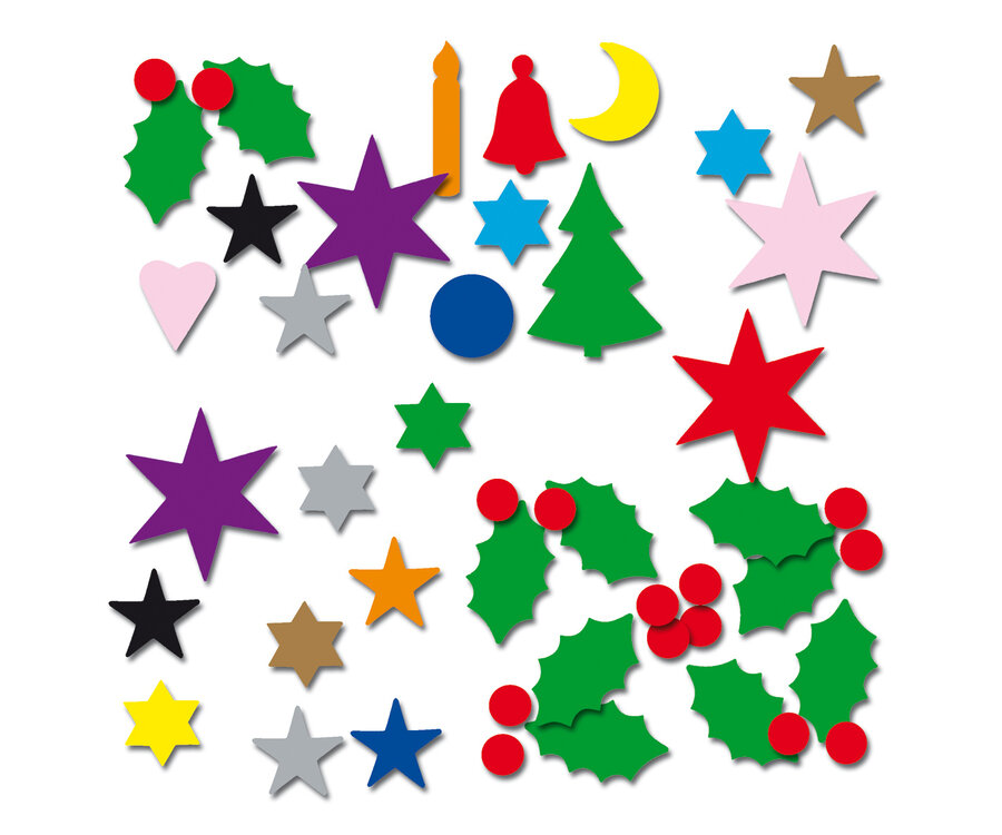 * 1 set plakfiguren Kerst - 12 soorten Kerst vormen - 25 plakfiguren per vorm