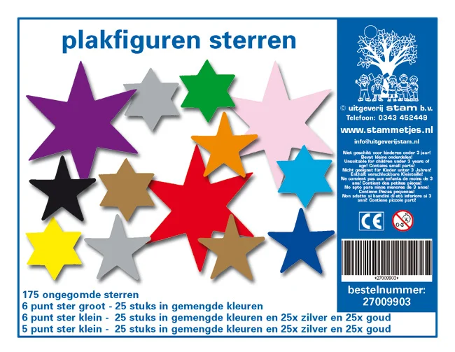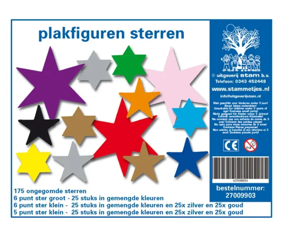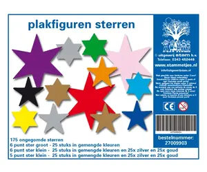 * 1 set plakfiguren Sterren - 175 sterren in verschillende kleuren - 3 verschillende vormen