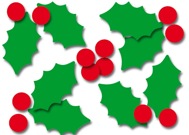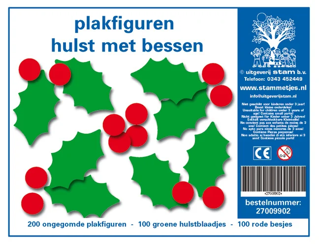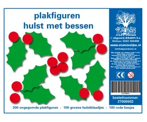 * 1 set plakfiguren Hulst met bessen - 200 plakfiguren - 100 rode besjes - 100 groen hulstblaadjes