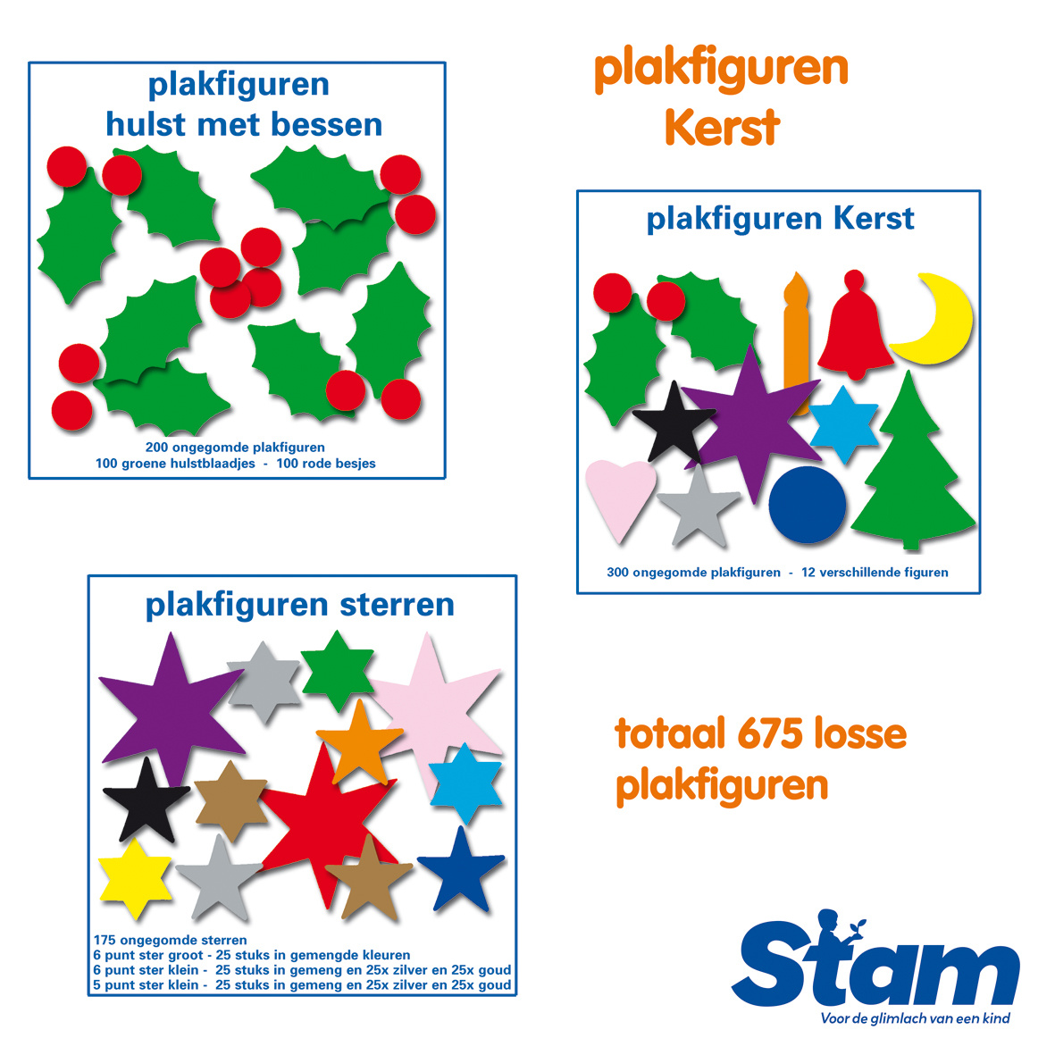 Sterren - hulst met bessen en diverse Kerst plakfiguren