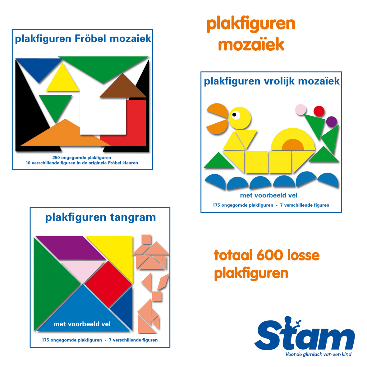 * 1 set plakfiguren Frobel mozaiek - 10 soorten Frobel - 25 plakfiguren per vorm