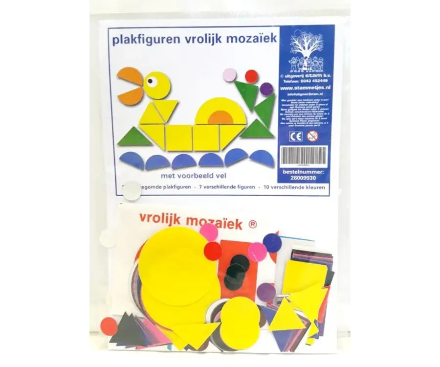 * 1 set plakfiguren Vrolijk mozaiek - 7 soorten plakfiguren - 25 plakfiguren per vorm