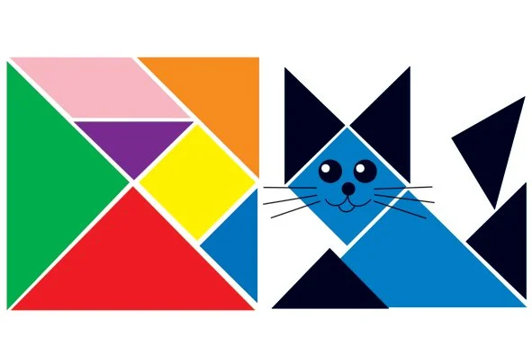 * 1 set plakfiguren Tangram mozaiek - 7 soorten Tangram vormen - 25 plakfiguren per vorm