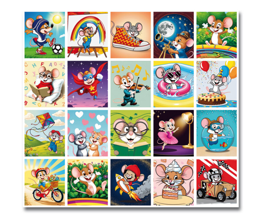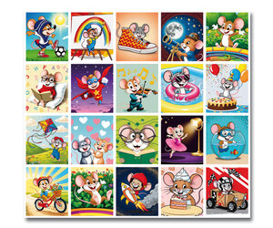 Vrolijke muizen beloningsstickers voor peuter en kleuters om gewenst gedrag te stimuleren en waardering in woorden 'zichtbaar' te ondersteunen.